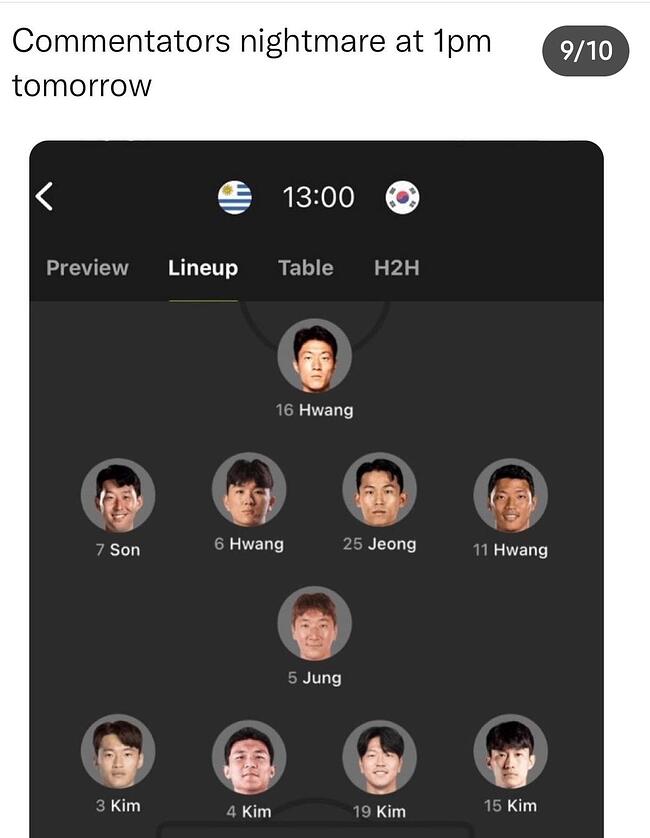 ㅂㅌ: 외국인들 배려하고자 첫경기에서 '11.황'을 뺐습니다.