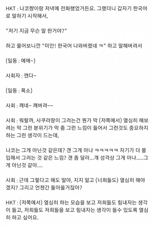 보기에 썩 좋지만은 않지만 그렇다고 나코가 뒷담화 대상이다. HKT는 겉과 속이 다른