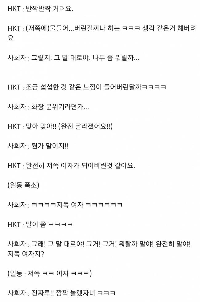 일본 48그룹에선 저렇게 티키타카 하는 것이 어느정도 허용되어 있기도 하고요.