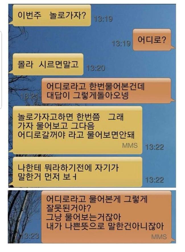 음... 매일 놀러가자 어디로? 거기는 별로인데 이런대화 계속되면 힘들죠.