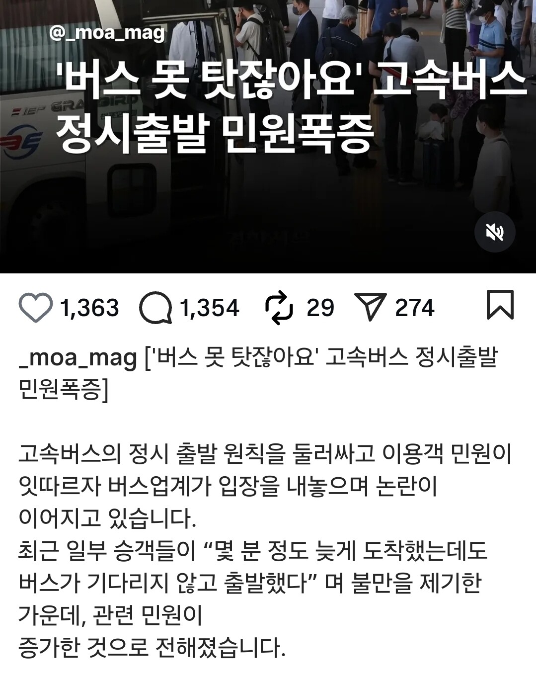최근에 처음 고속버스 타봤는데, 15분인가? 전부터 탑승 시작하고 하던데 당연히 출발시간 전에 와있어야지 진짜 말도 안되는 민원이네요.