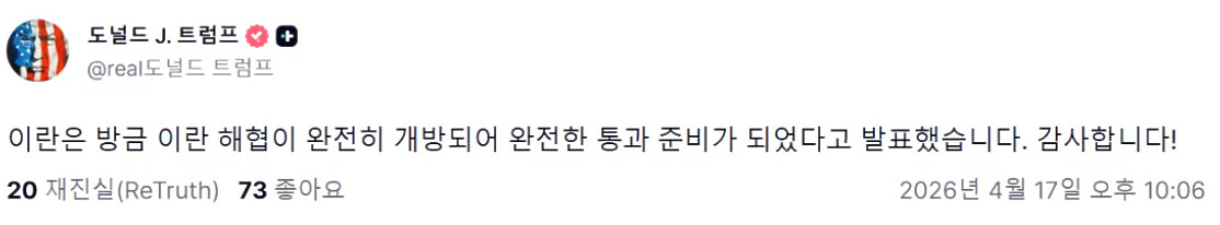첫번째 합의 결렬후 역봉쇄 하고 몇일 있다가 트럼프가 인터뷰햇는데 이란이 거의다 받아들이려 한다고 했엇죠. 결국 본인이 원하는 쪽으로 이끌어내고 있는것 같습니다