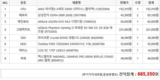 제생각은 진짜 가성비를 추구하고싶다면, 부품따로따로 중고로사는게 더쌀겁니다.