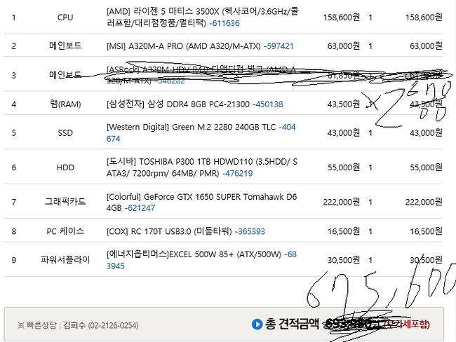 (2) 견적을 이리저리 짜봤는데 사실 뭐가뭔지 잘모르겠습니다