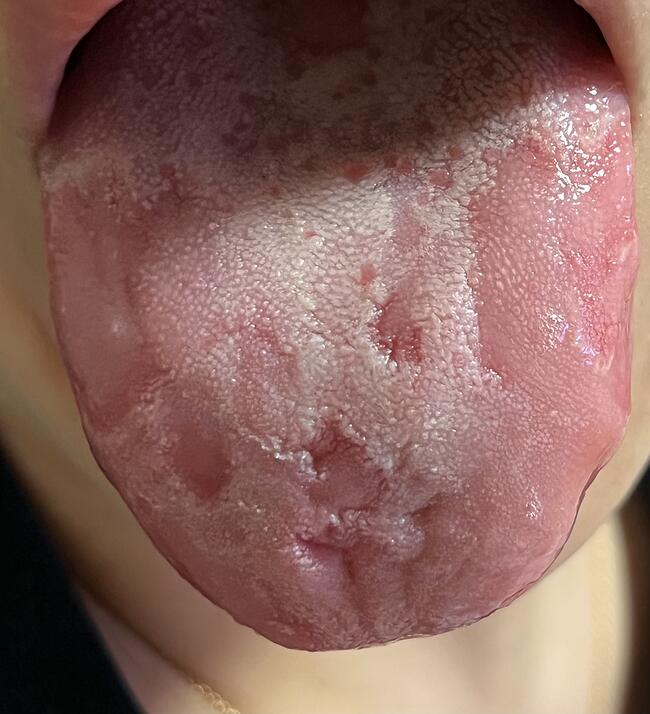 의사는 아니지만 사진상으로는 지도상 혀(geographic tongue)와 비슷해 보이네요..