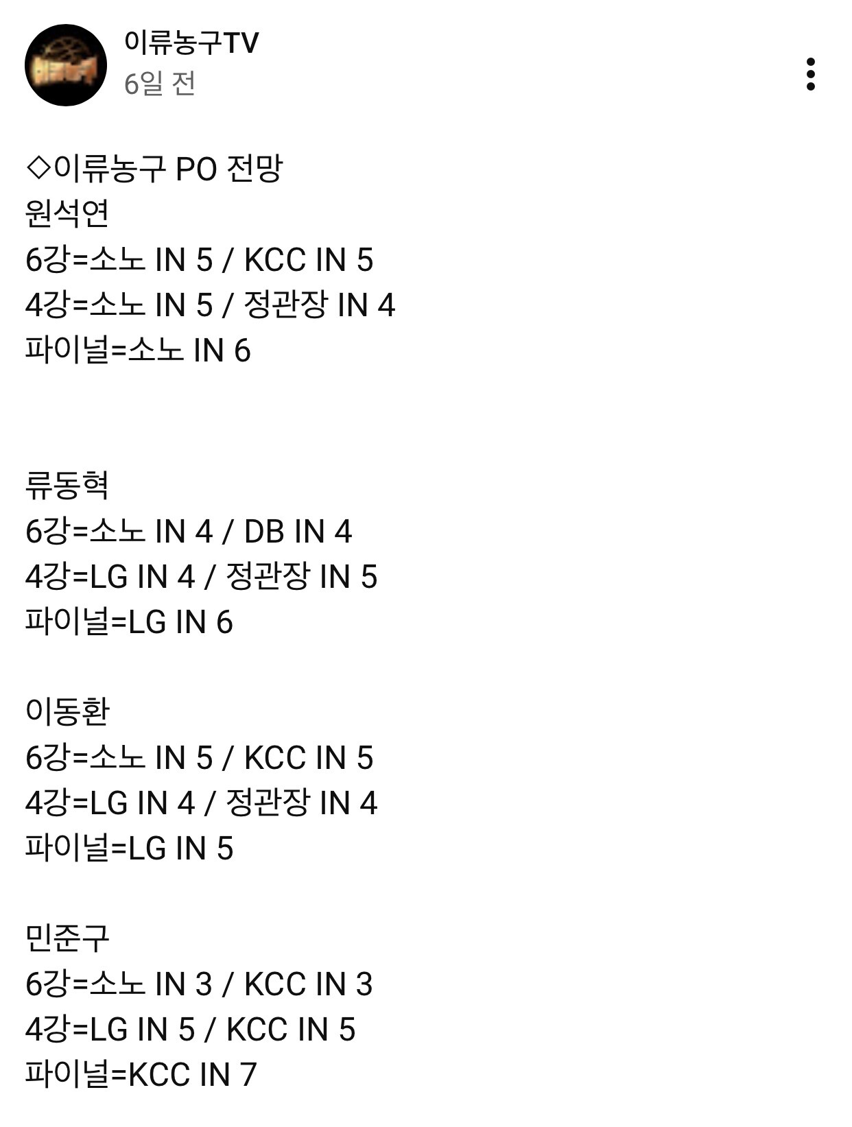 이류농구 기자 중 민준구 혼자 맞힌 6강 PO 예측