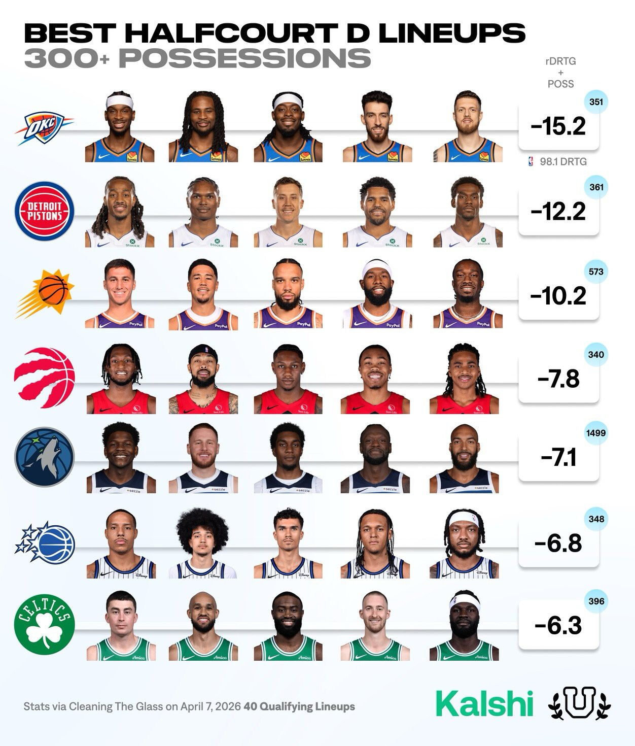 이들의 주전 라인업은 OFFRTG +134.9 DEFRTG +108.6 NETRTG +26.4로, 200분 이상 돌린 라인업 중 독보적인 1위였습니다.