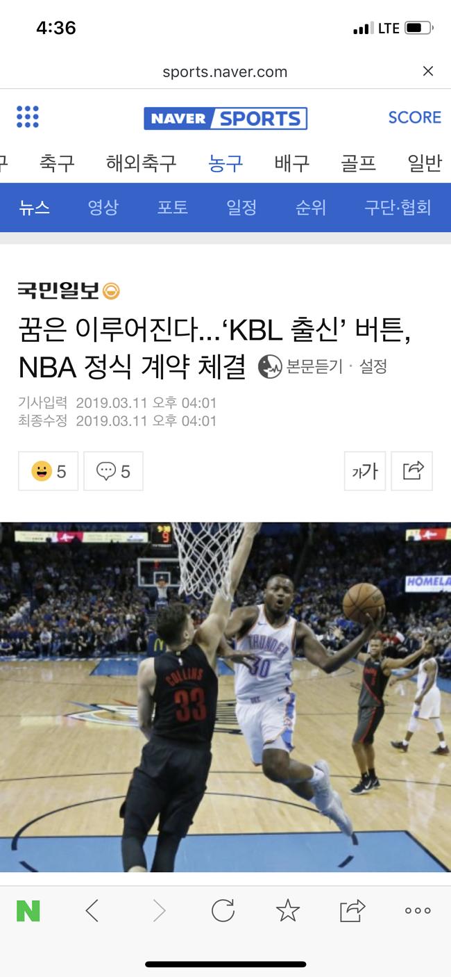 몇명 있긴한데 다른 선수들은 해외 프로커리어 밟다가 한국온다음 느바를간거고 버튼은 대학졸업후 한국왔다가 가는거라 새로운 케이스죠